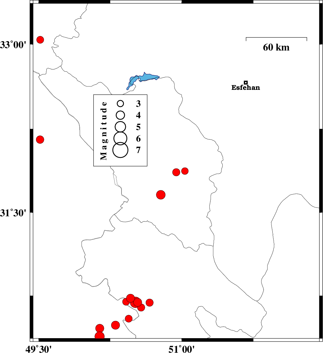 | 2025/05/27 | 14:31:54.5 | 18:01:54.5 | 30.541 | 50.444 | 12 | ML3.4 | Khoozestan Province, 20 km -East of Behbahan | ||