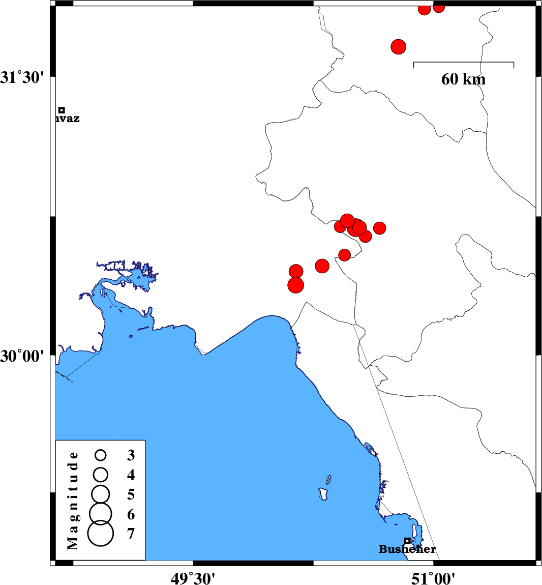 | 2025/06/04 | 15:37:06.0 | 19:07:06.0 | 30.453 | 50.14 | 12 | ML4 | Khoozestan Province, 19 km South-West of Behbahan | ||