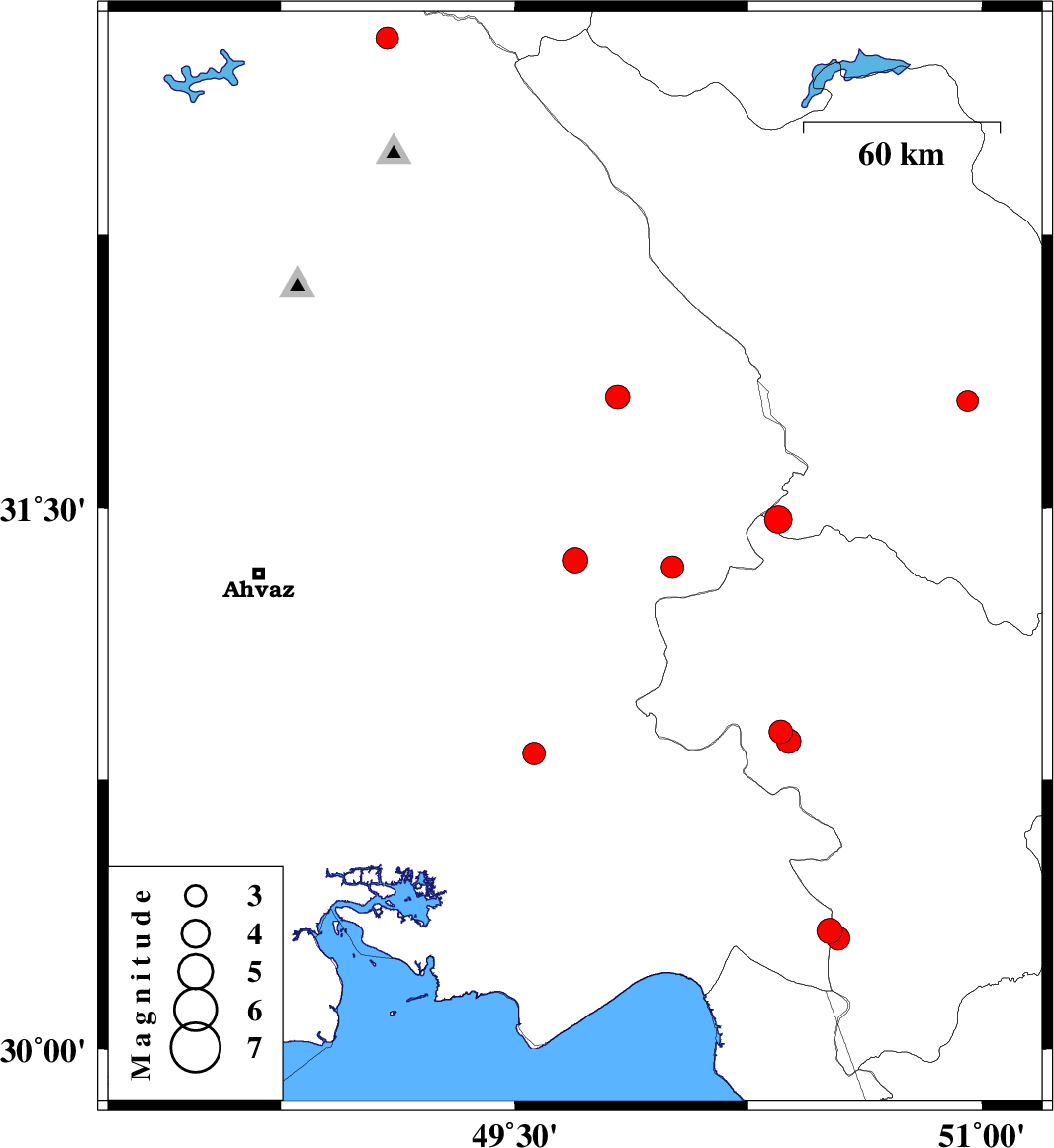 | 2025/07/10 | 08:49:43.5 | 12:19:43.5 | 30.823 | 49.562 | 12 | ML3.3 | Khoozestan Province, 15 km -West of Omidiyeh |
