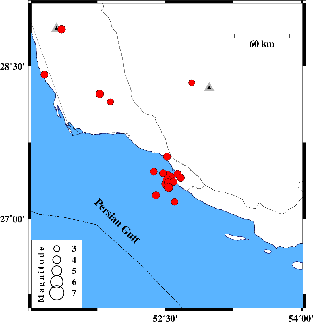 2025/08/09 | 20:14:30.8 | 23:44:30.8 | 28.151 | 51.894 | 12 | ML:3.3 | Bushehr Province, 40 km North-West of Bandar-e kangan | ||