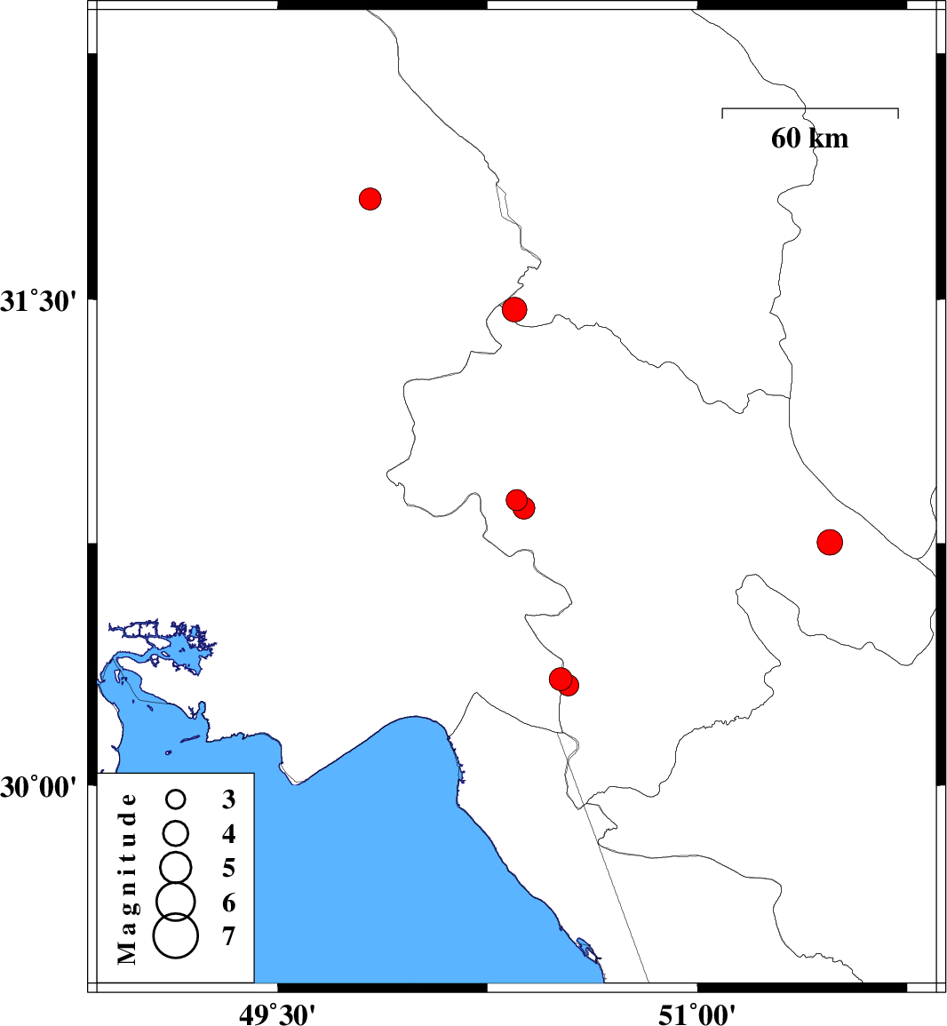 | 2025/07/29 | 22:12:38.6 | 01:42:38.6 | 30.753 | 51.473 | 12 | ML4.1 | Kohkiluieh va boyerahmad Province, 13 km South of Sisakht | ||
