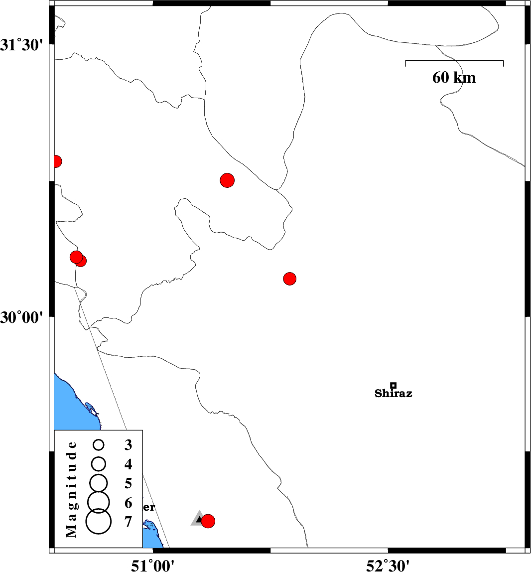 | 2025/07/10 | 03:24:11.1 | 06:54:11.1 | 28.859 | 51.352 | 27 | ML4 | Bushehr Province, 9 km of Ahram |