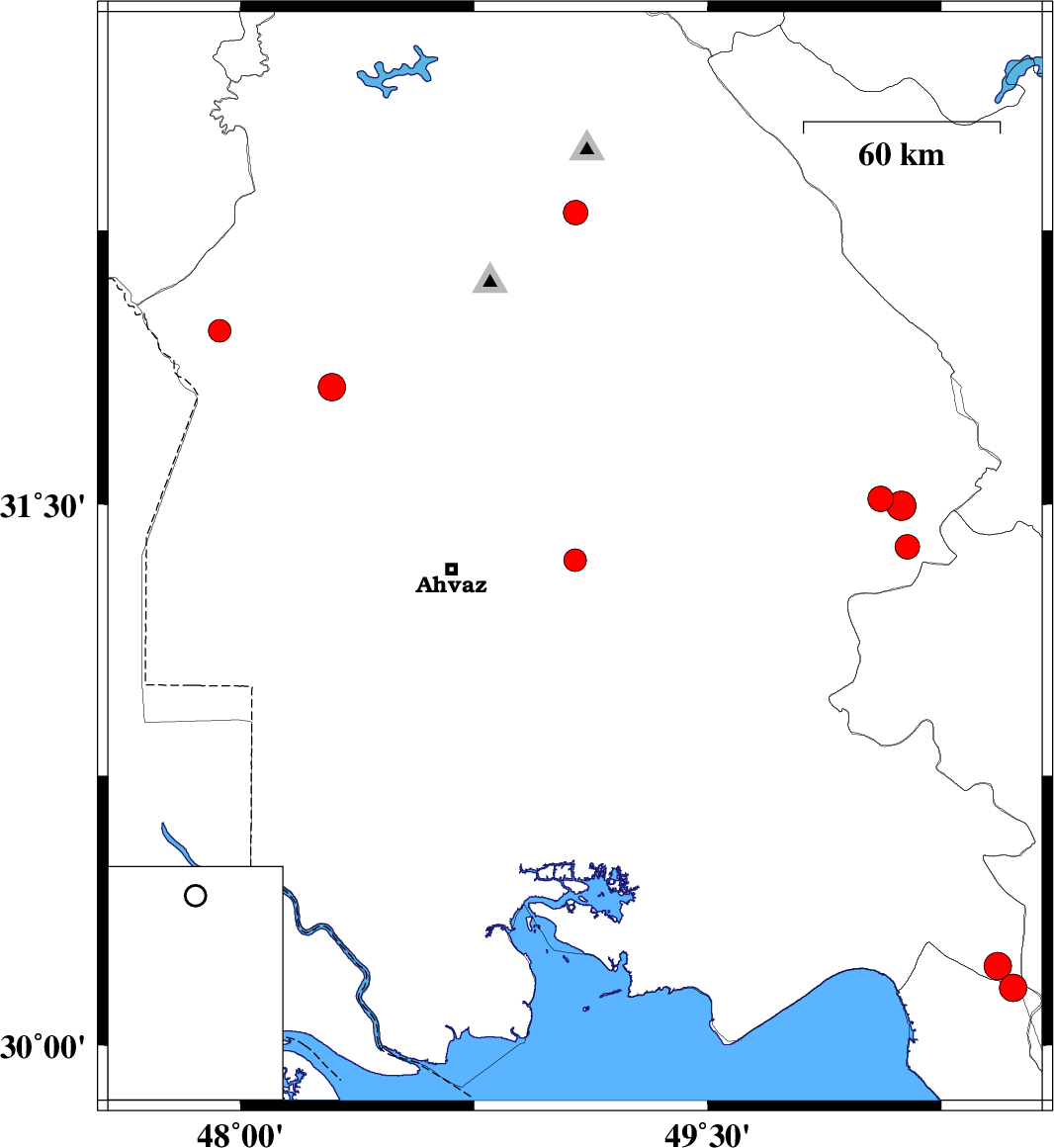2025/09/16 | 19:55:52.7 | 23:25:52.7 | 31.346 | 49.074 | 16 | ML3.3 | Khoozestan Province, 38 km -East of Ahvaz | ||