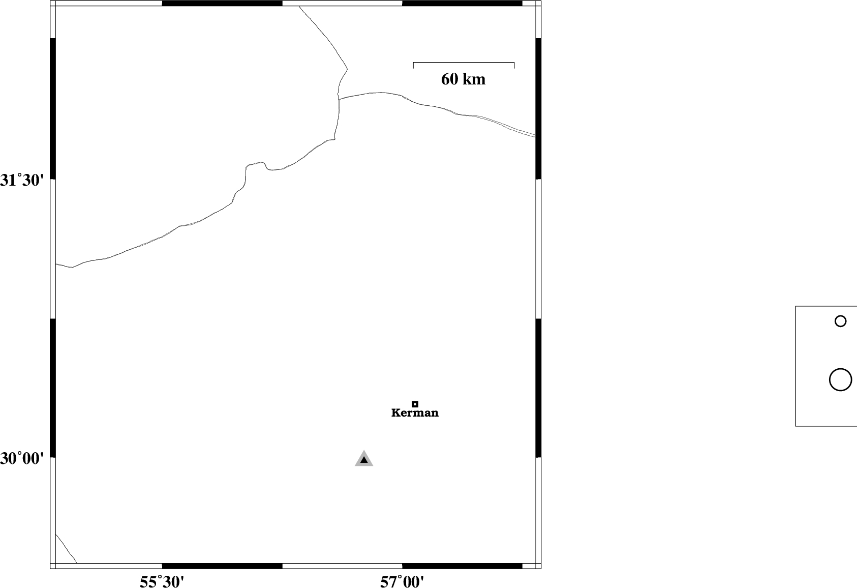 2025/09/19 | 12:36:38.7 | 16:06:38.7 | 30.922 | 56.333 | 12 | ML3.3 | Kerman Province, 26 km North-West of Zarand | ||