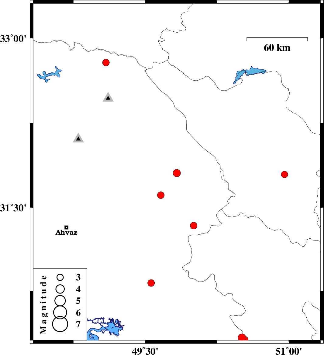 | 2025/07/13 | 10:24:04.2 | 13:54:04.2 | 31.338 | 50.007 | 12 | ML3.2 | Khoozestan Province, 22 km South-East of Bagh Malek | ||