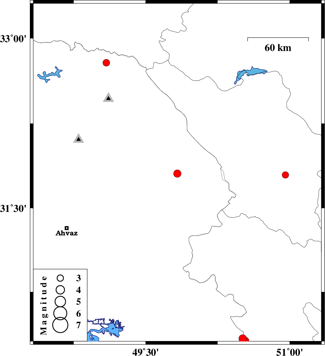 | 2025/07/28 | 20:32:14.6 | 00:02:14.6 | 30.33 | 50.511 | 12 | ML3.7 | Khoozestan Province, 27 km -West of Dogonbadan | ||