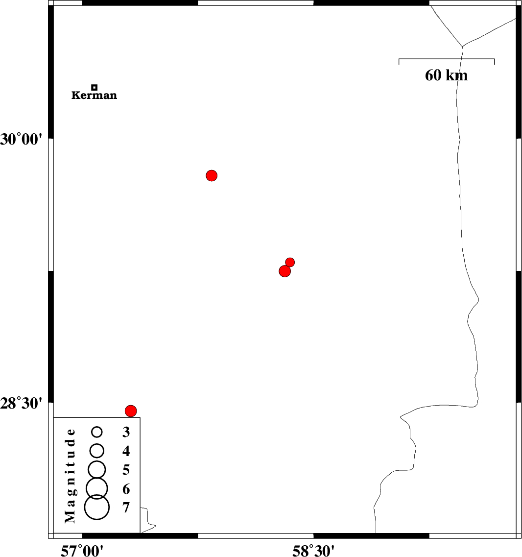 2025/09/23 | 09:20:24.2 | 12:50:24.2 | 29.248 | 58.313 | 10 | ML3.4 | Kerman Province, 16 km North of Bam | ||