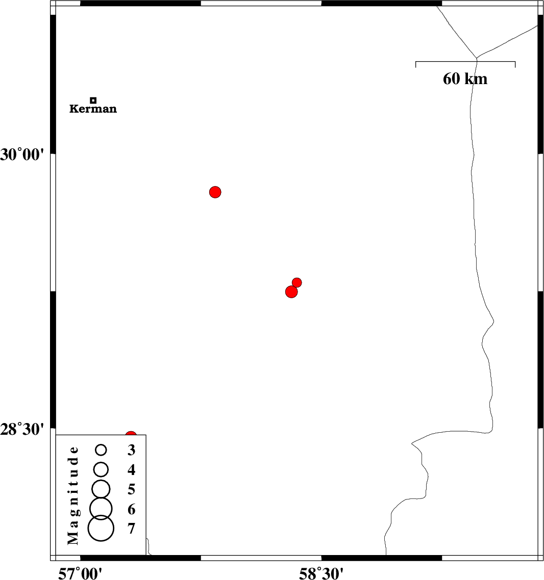 2025/09/23 | 09:20:24.2 | 12:50:24.2 | 29.248 | 58.313 | 10 | ML3.4 | Kerman Province, 16 km North of Bam | ||