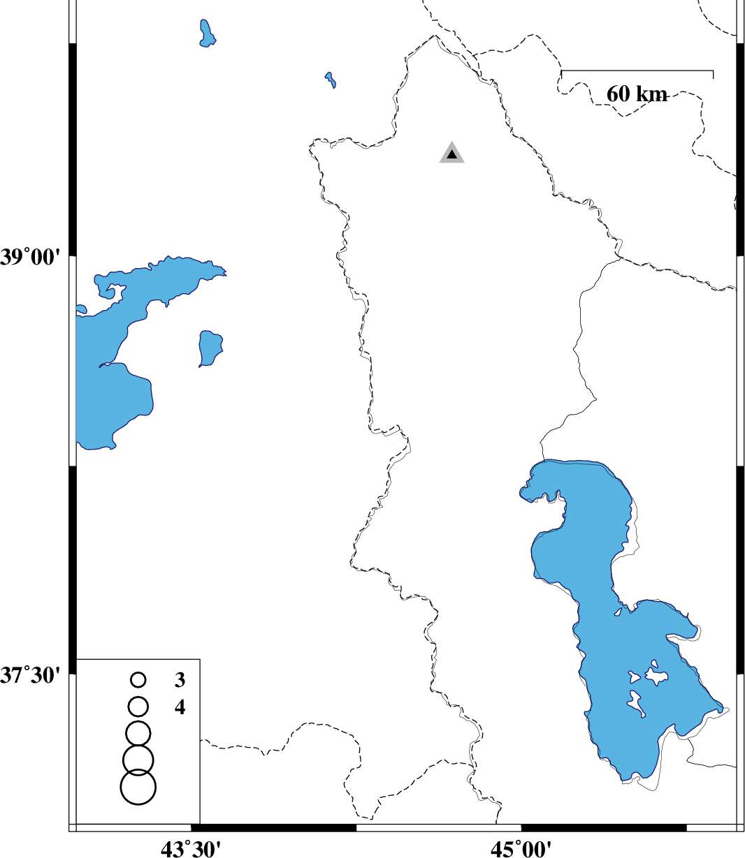 2025/09/29 | 19:24:34.3 | 22:54:34.3 | 38.454 | 44.477 | 18 | ML2.7 | Azarbaijan Gharbi Province, 39 km North-West of Salmas |