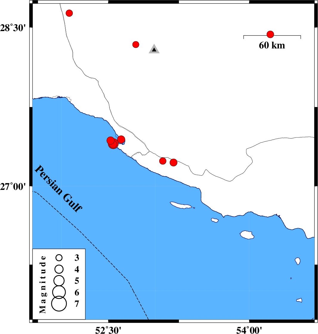 2025/07/26 | 10:55:28.1 | 14:25:28.1 | 27.398 | 52.551 | 12 | ML:3.7 | Persian Gulf, 37 km South-West of Mehr | ||