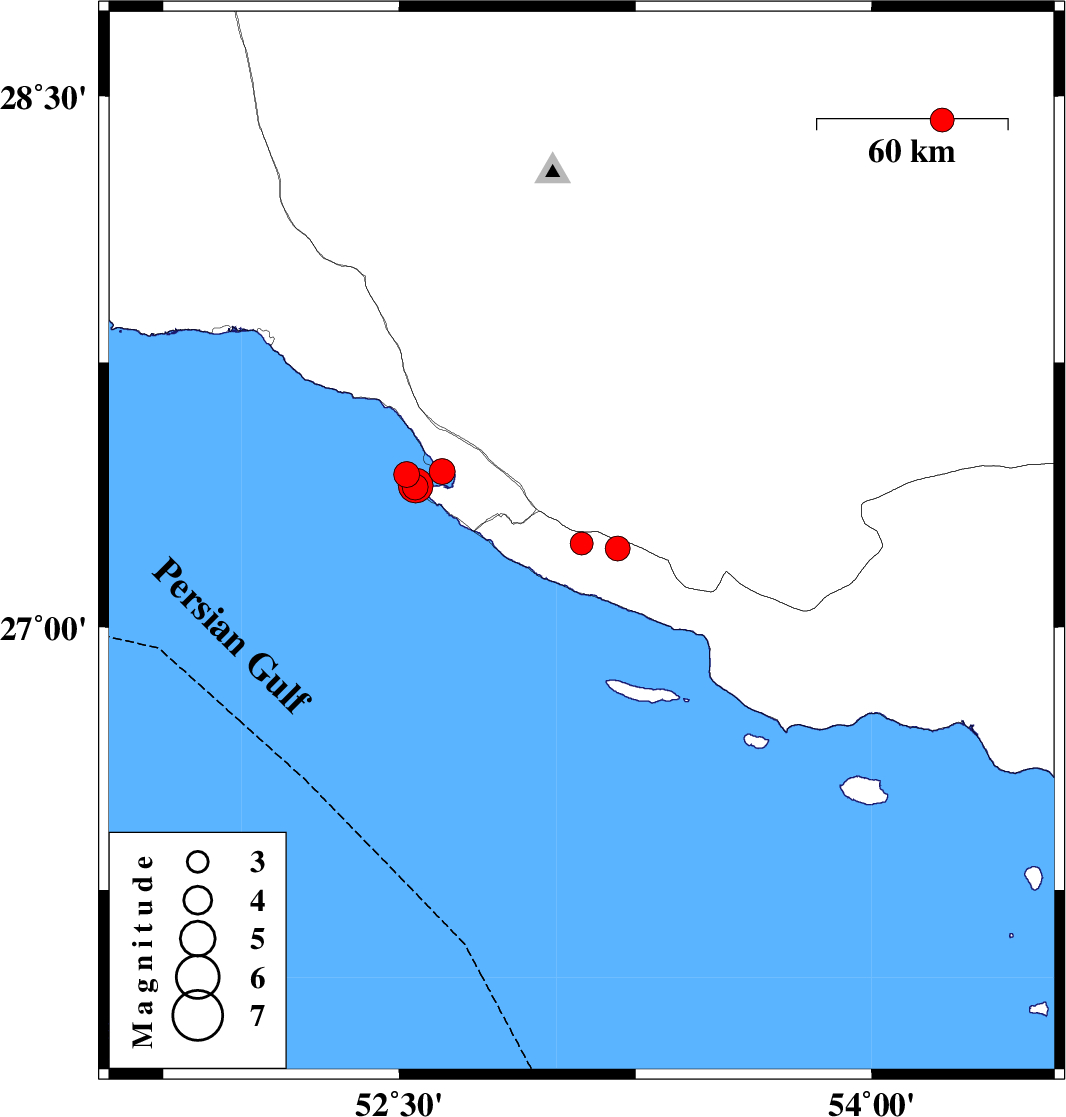 2025/07/26 | 10:10:02.4 | 13:40:02.4 | 27.403 | 52.552 | 12 | ML4.9 | Persian Gulf, 37 km South-West of Mehr | ||