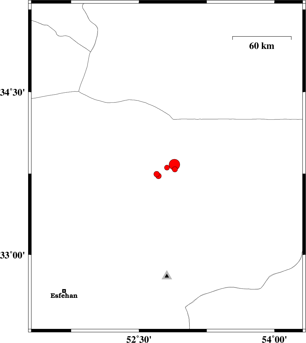 2025/10/02 | 20:35:04.4 | 00:05:04.4 | 33.834 | 52.892 | 16 | ML5.3 | Esfahan Province, 70 km North-East of Ardestan |