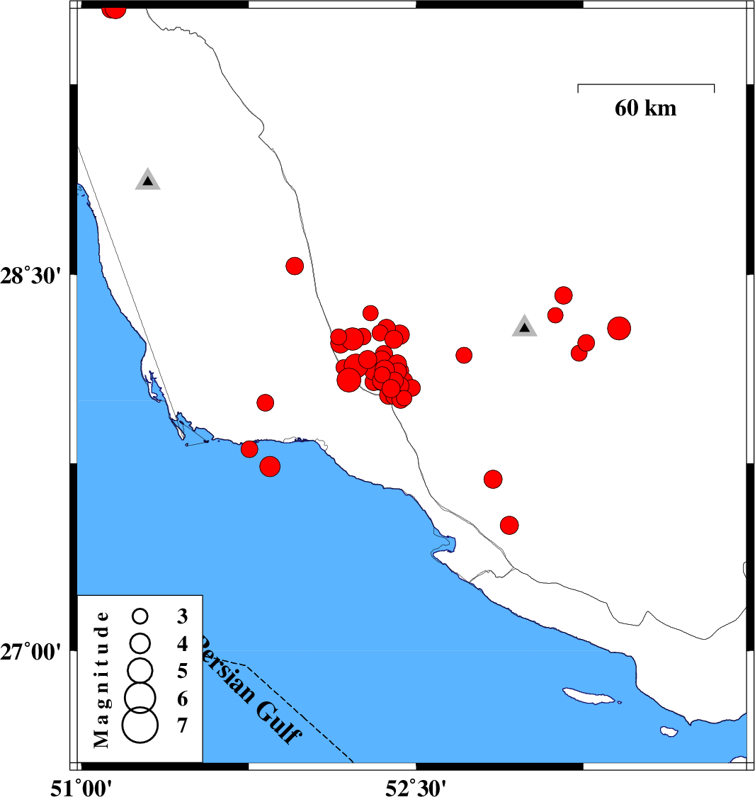 2025/01/30 12:51:05.7 16:21:05.7 28.0852.37912 ML4.4 Fars Province, 28 km North of Jam