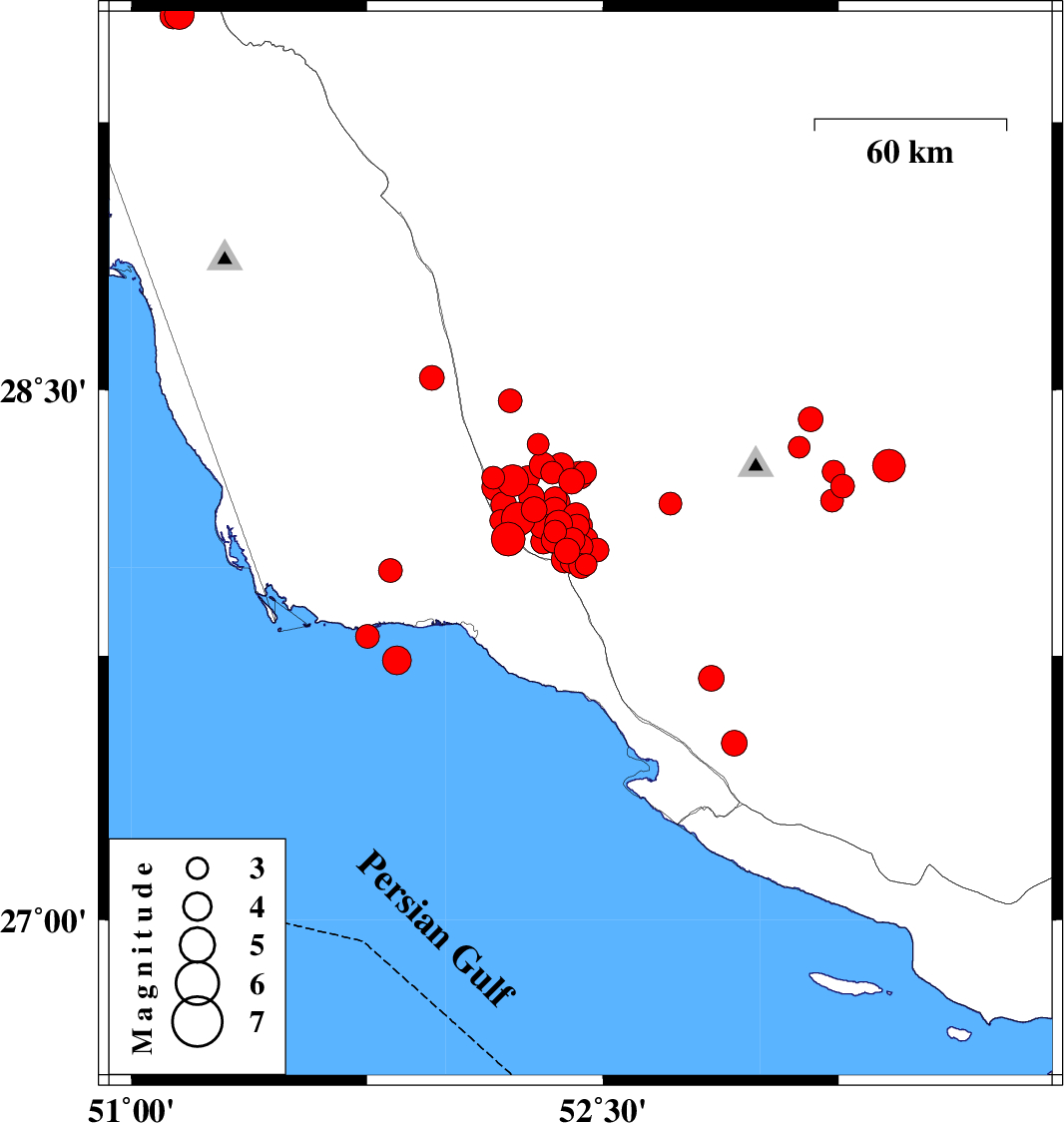 | 2025/01/31 | 14:21:58.1 | 17:51:58.1 | 28.05 | 52.481 | 12 | ML3.4 | Fars Province, 29 km North-East of Jam | ||