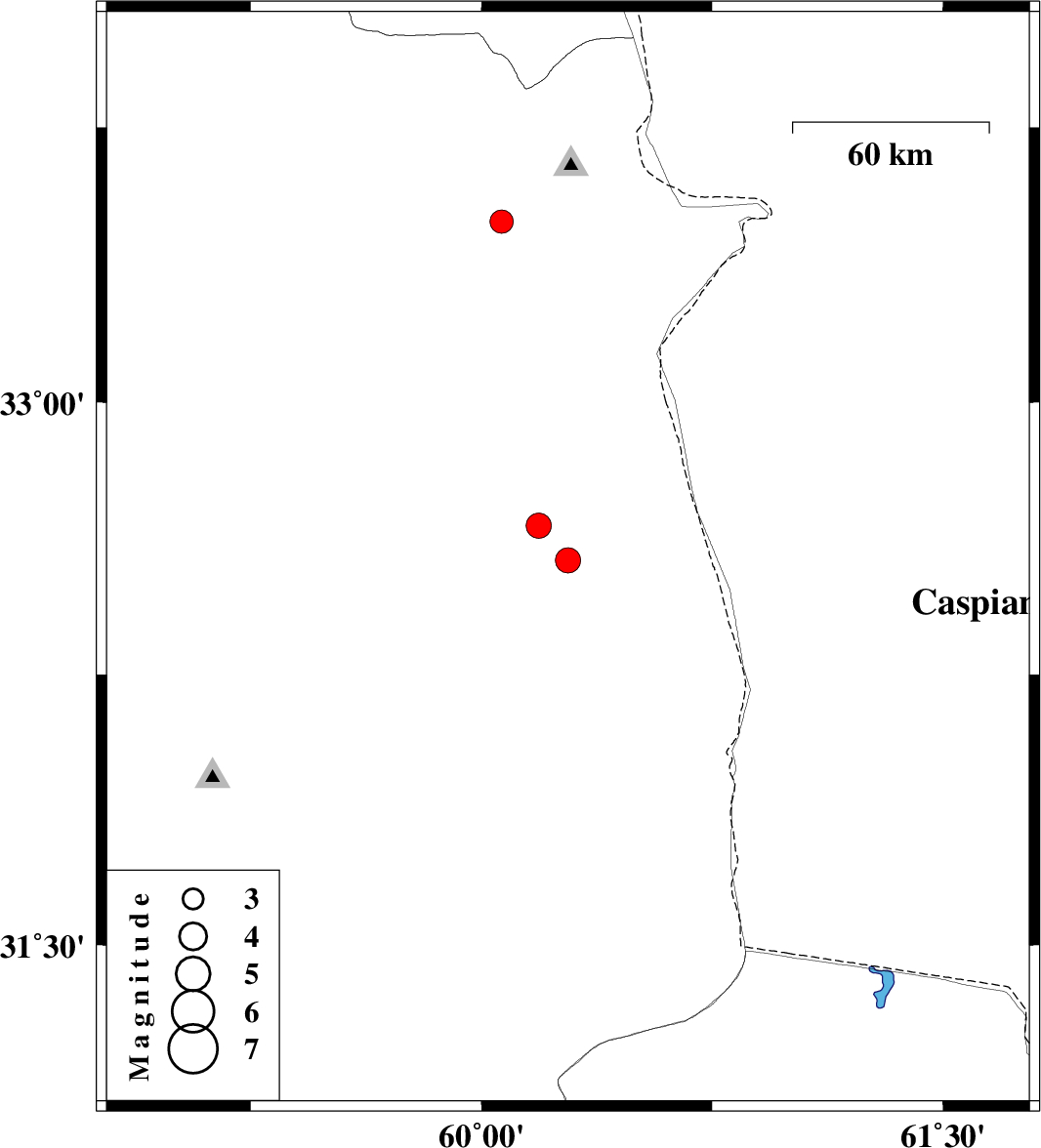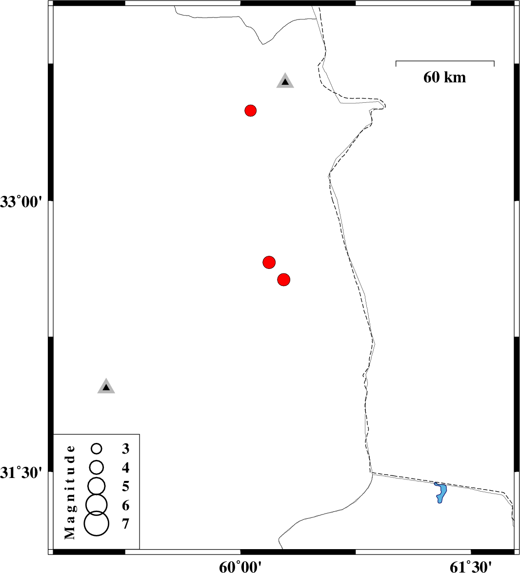 2025/10/07 | 15:18:10.2 | 18:48:10.2 | 32.661 | 60.186 | 12 | ML3.7 | Khorasan(south) Province, 37 km -East of Sarbisheh | ||