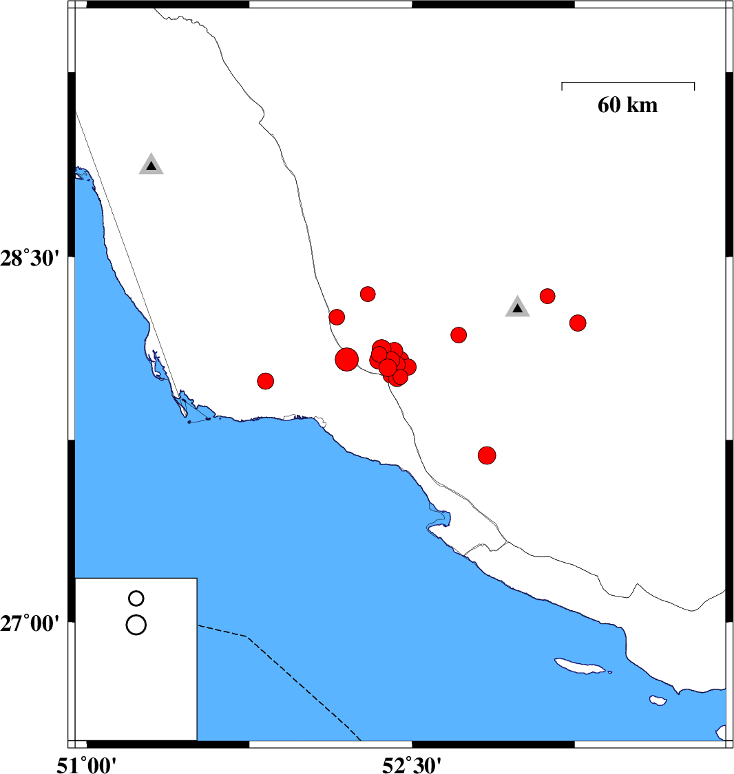 2025/01/30 12:51:05.7 16:21:05.7 28.0852.37912 ML4.4 Fars Province, 28 km North of Jam