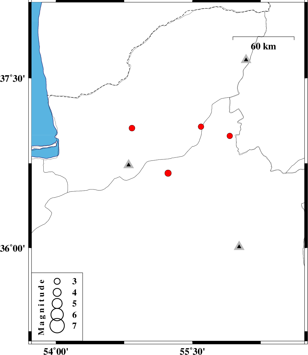 | 2025/01/17 | 09:33:02.7 | 13:03:02.7 | 37.062 | 54.836 | 20 | ML2.9 | Golestan Province, 18 km North of Ali Abad |