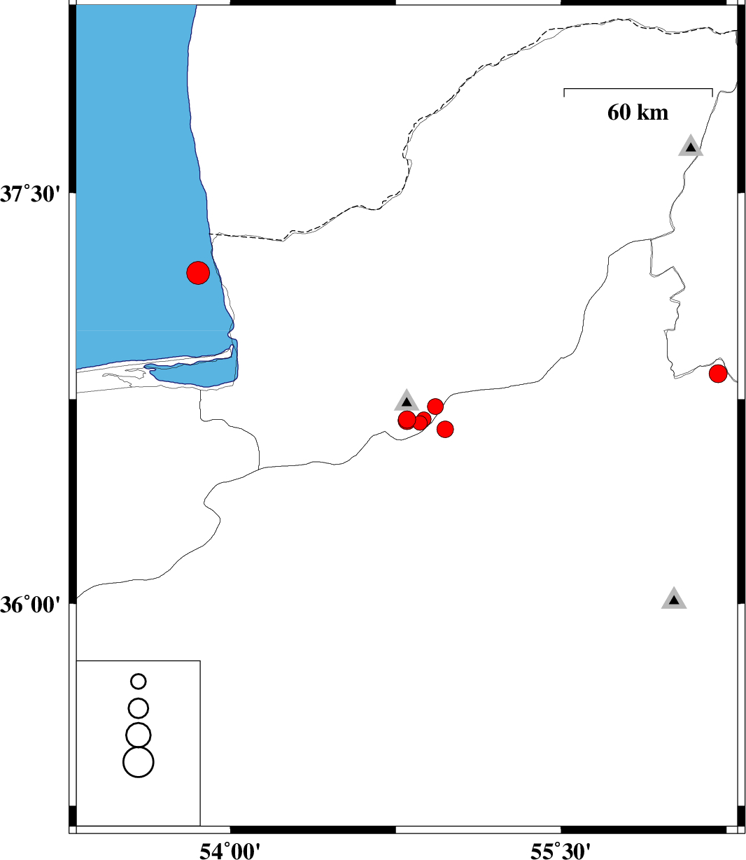 | 2025/09/27 | 12:04:46.0 | 15:34:46.0 | 37.209 | 53.853 | 14 | ML4.7 | Caspian Sea, 39 km North-West of Bandar-e torkaman | ||