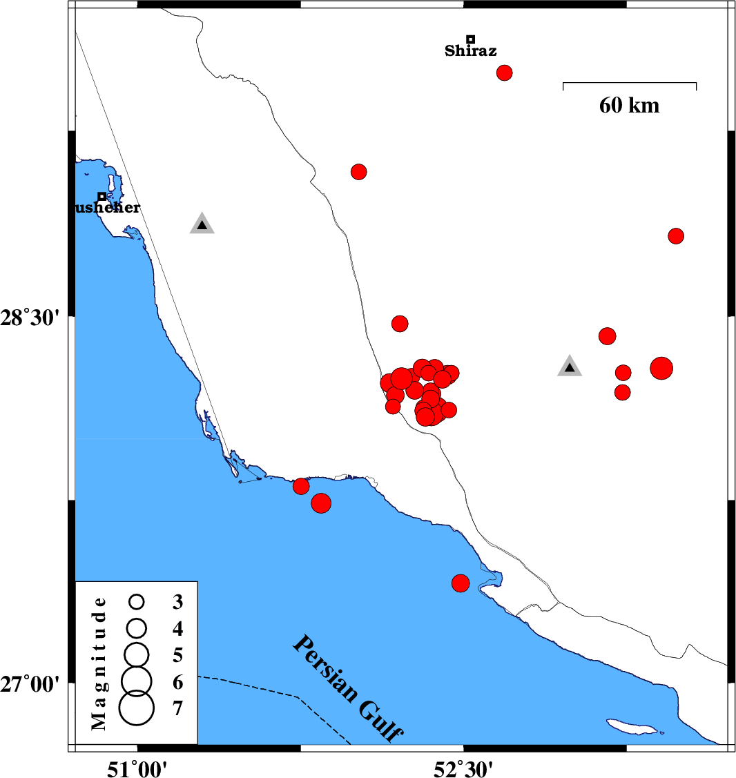 | 2024/12/23 | 06:31:51.5 | 10:01:51.5 | 27.408 | 52.485 | 20 | ML3.7 | Persian Gulf, 43 km South-West of Mehr | ||