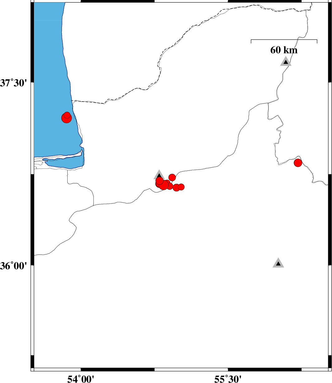 | 2025/10/20 | 02:48:26.5 | 06:18:26.5 | 37.232 | 53.859 | 12 | ML3 | Caspian Sea, 41 km North-West of Bandar-e torkaman | ||