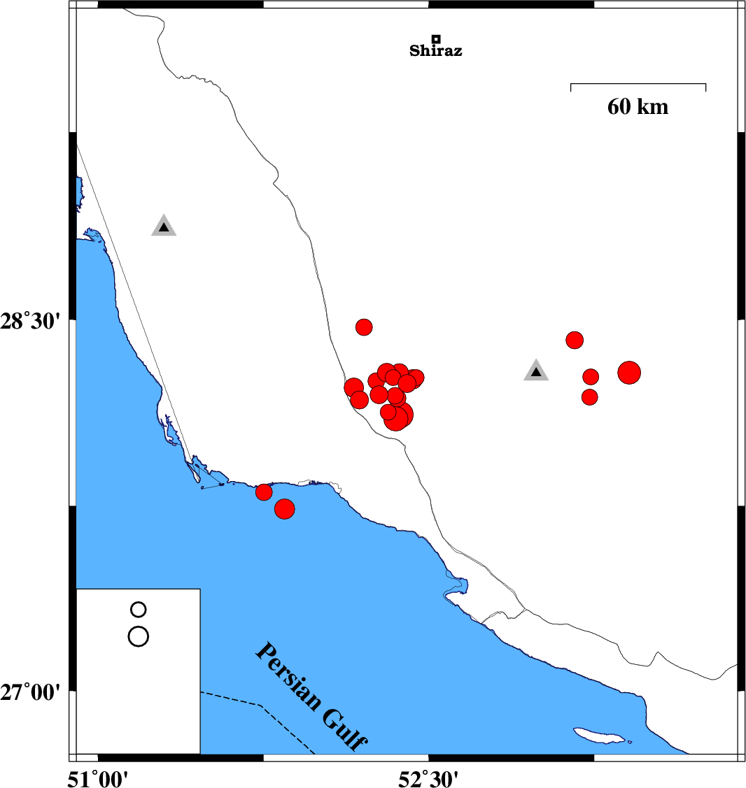 | 2025/01/06 | 17:23:49.1 | 20:53:49.1 | 28.287 | 53.41 | 10 | ML4.7 | Fars Province, 28 km South-West of Jahrom | ||