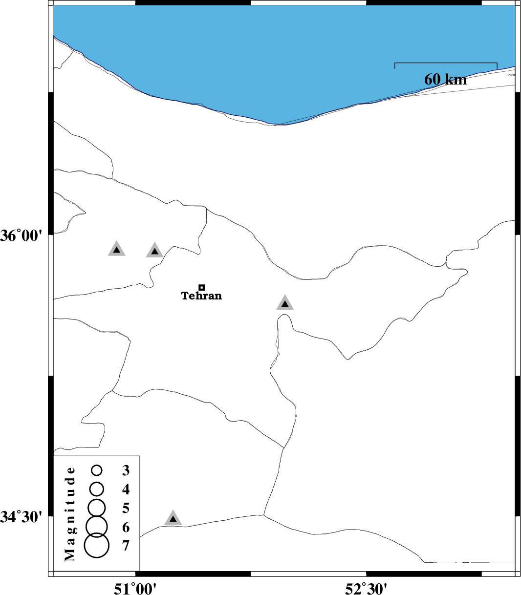 | 2025/10/27 | 12:19:56.0 | 15:49:56.0 | 35.702 | 51.967 | 12 | ML2.9 | Tehran Province, 10 km -West of Damavand |