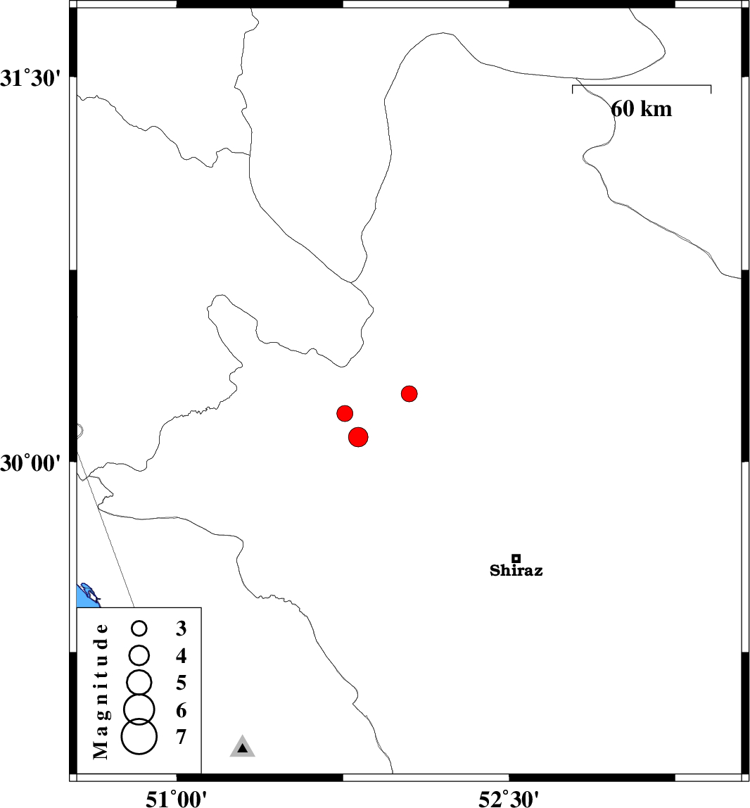 | 2025/10/24 | 16:36:46.3 | 20:06:46.3 | 30.097 | 51.819 | 12 | ML4 | Fars Province, 29 km -East of Nurabad |