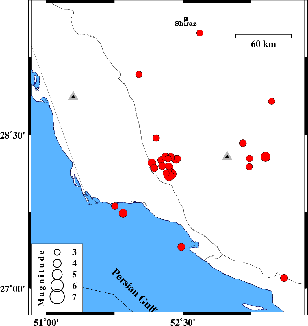 | 2024/12/23 | 06:31:51.5 | 10:01:51.5 | 27.408 | 52.485 | 20 | ML3.7 | Persian Gulf, 43 km South-West of Mehr | ||
