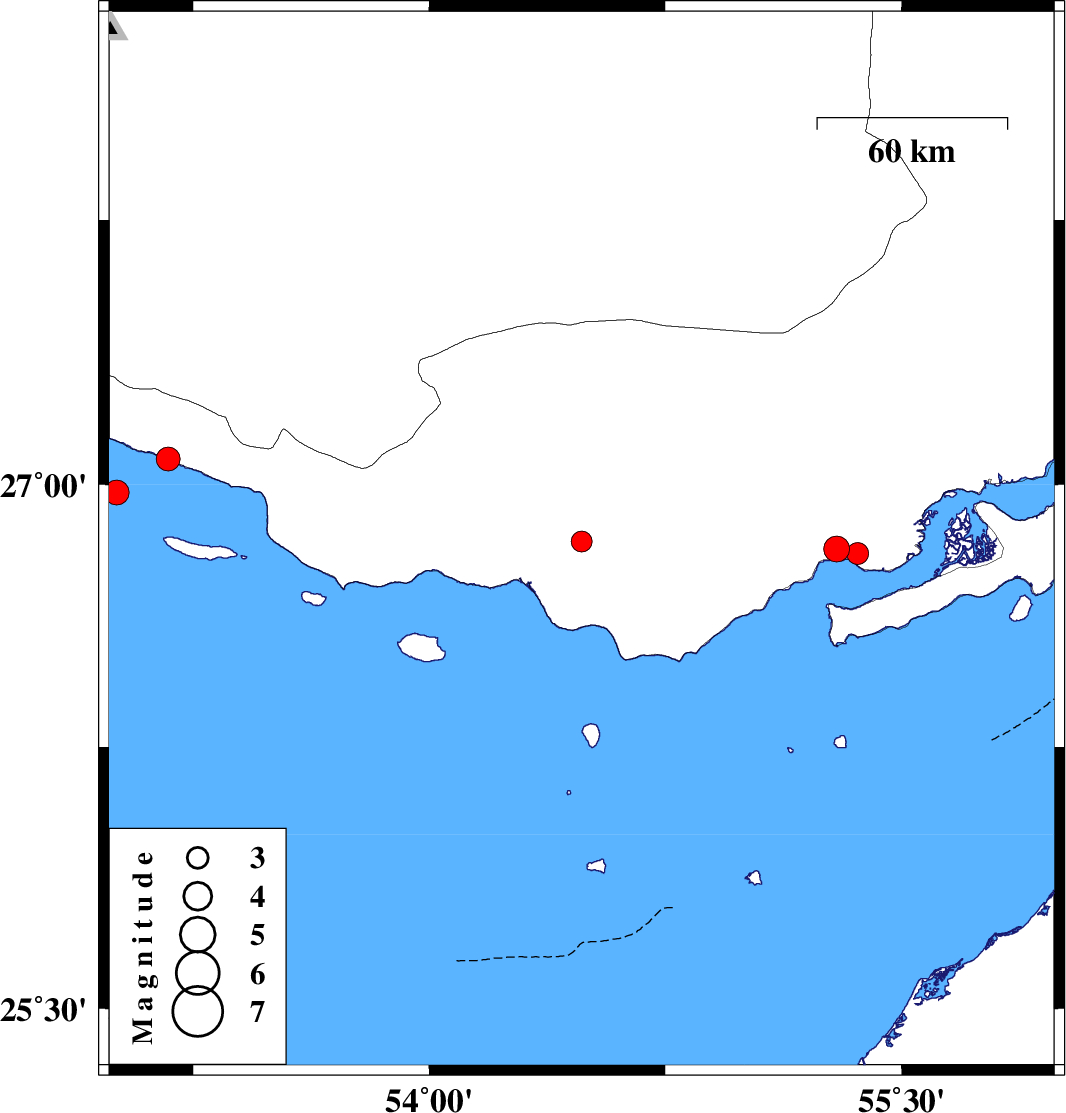 | 2025/10/30 | 00:10:47.7 | 03:40:47.7 | 26.977 | 53.008 | 12 | ML3.5 | Persian Gulf, 43 km South-West of Lamerd | ||