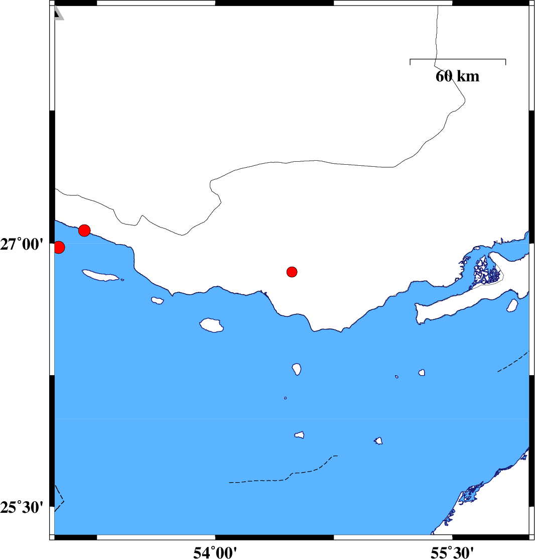 | 2025/10/30 | 00:10:47.7 | 03:40:47.7 | 26.977 | 53.008 | 12 | ML3.5 | Persian Gulf, 43 km South-West of Lamerd | ||