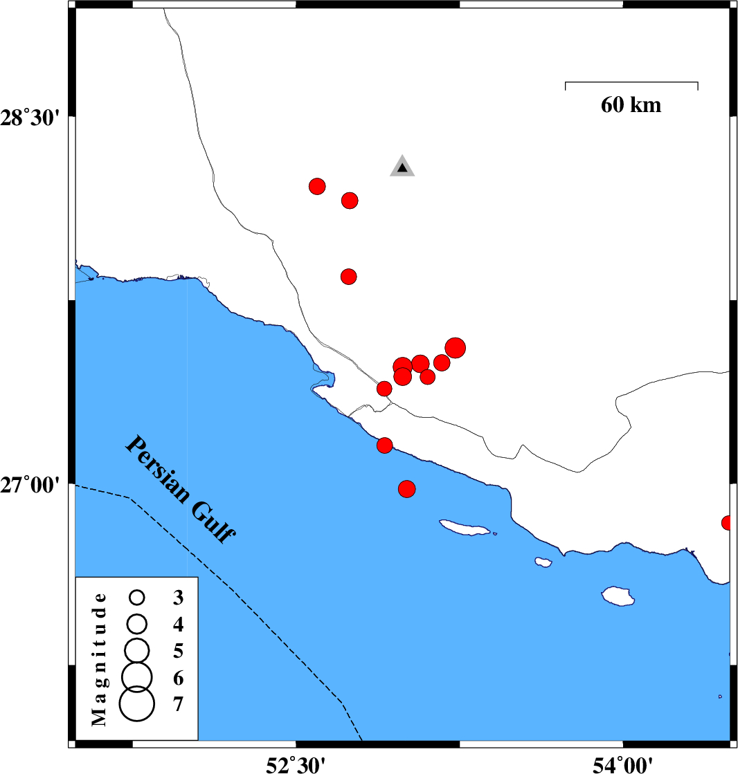 | 2025/11/05 | 15:36:21.6 | 19:06:21.6 | 27.156 | 52.905 | 12 | ML3.2 | Persian Gulf, 44 km South of Mehr | ||