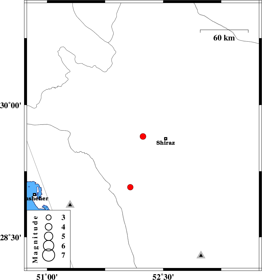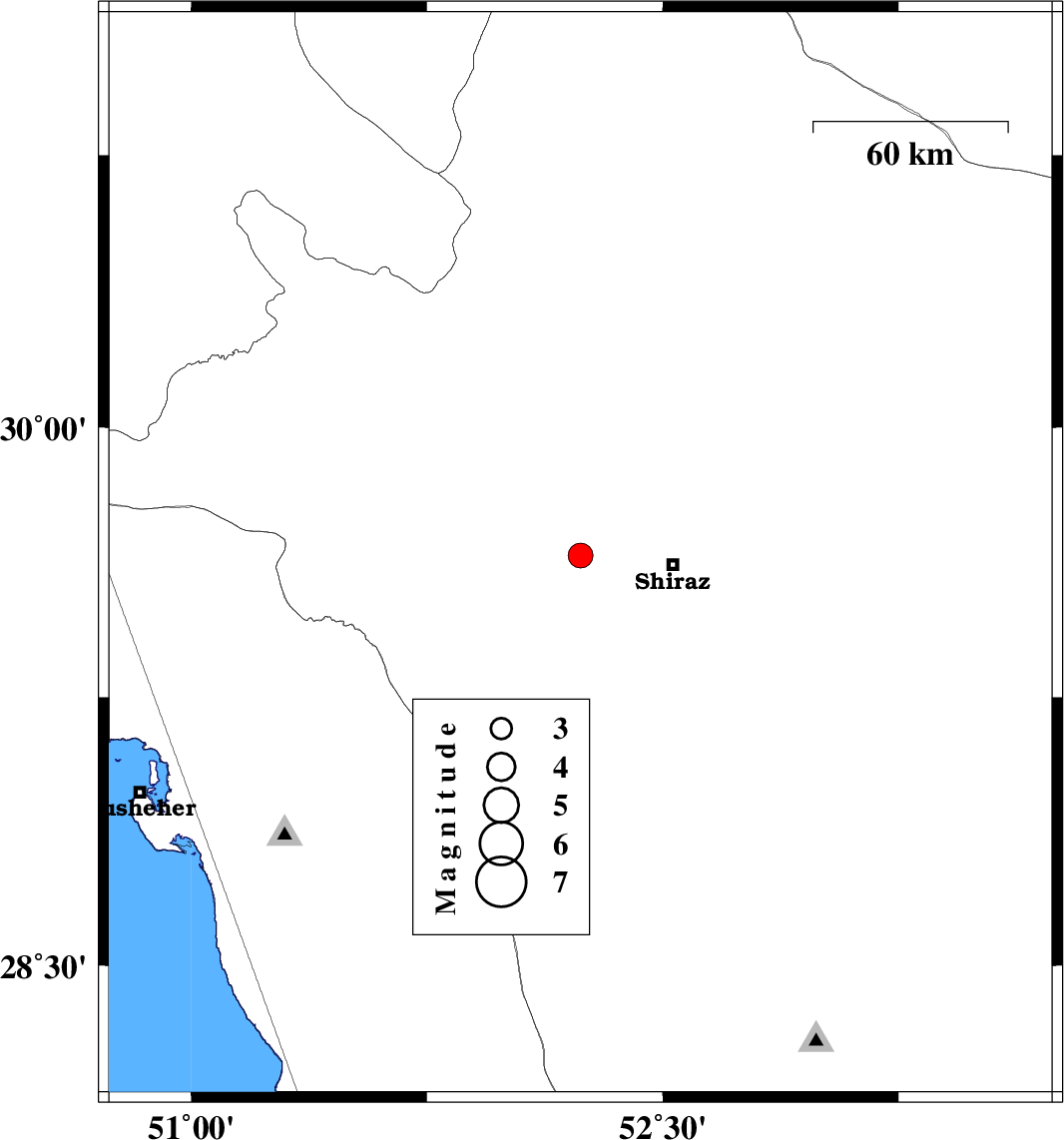 | 2025/11/16 | 02:21:35.2 | 05:51:35.2 | 29.644 | 52.238 | 12 | ML3.5 | Fars Province, 29 km -West of Shiraz | ||