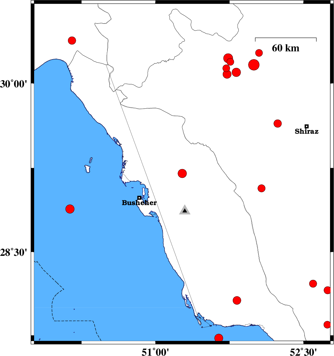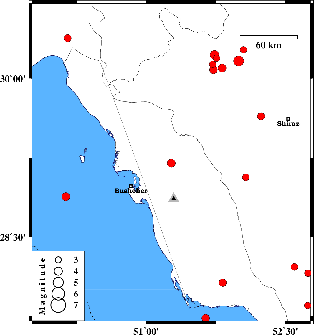 | 2025/11/10 | 12:22:09.6 | 15:52:09.6 | 28.884 | 50.133 | 12 | ML3.9 | Persian Gulf, 69 km South-West of Busheher | ||