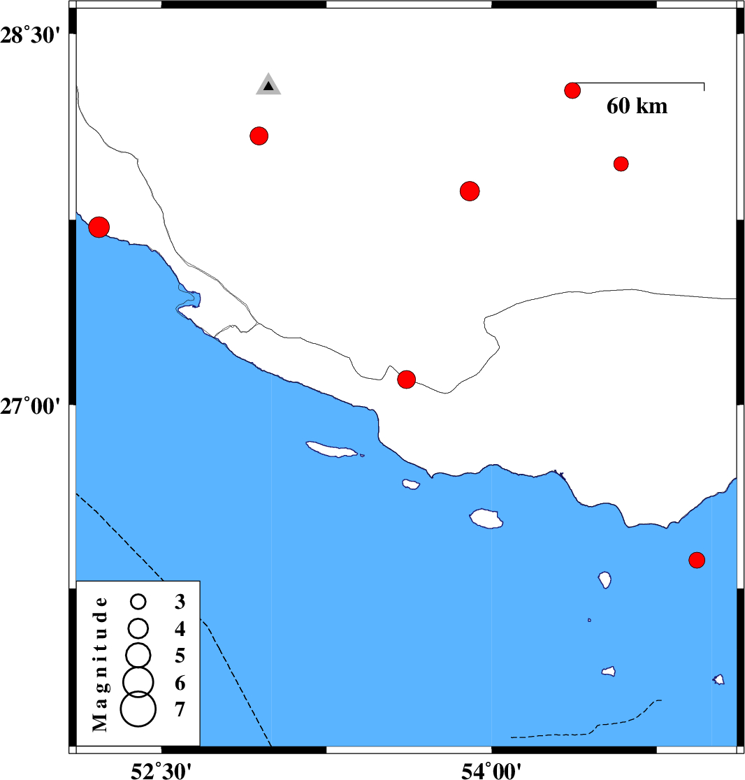| 2024/11/28 | 05:43:10.5 | 09:13:10.5 | 27.865 | 53.9 | 12 | ML3.9 | Fars Province, 48 km North-West of Lar | ||