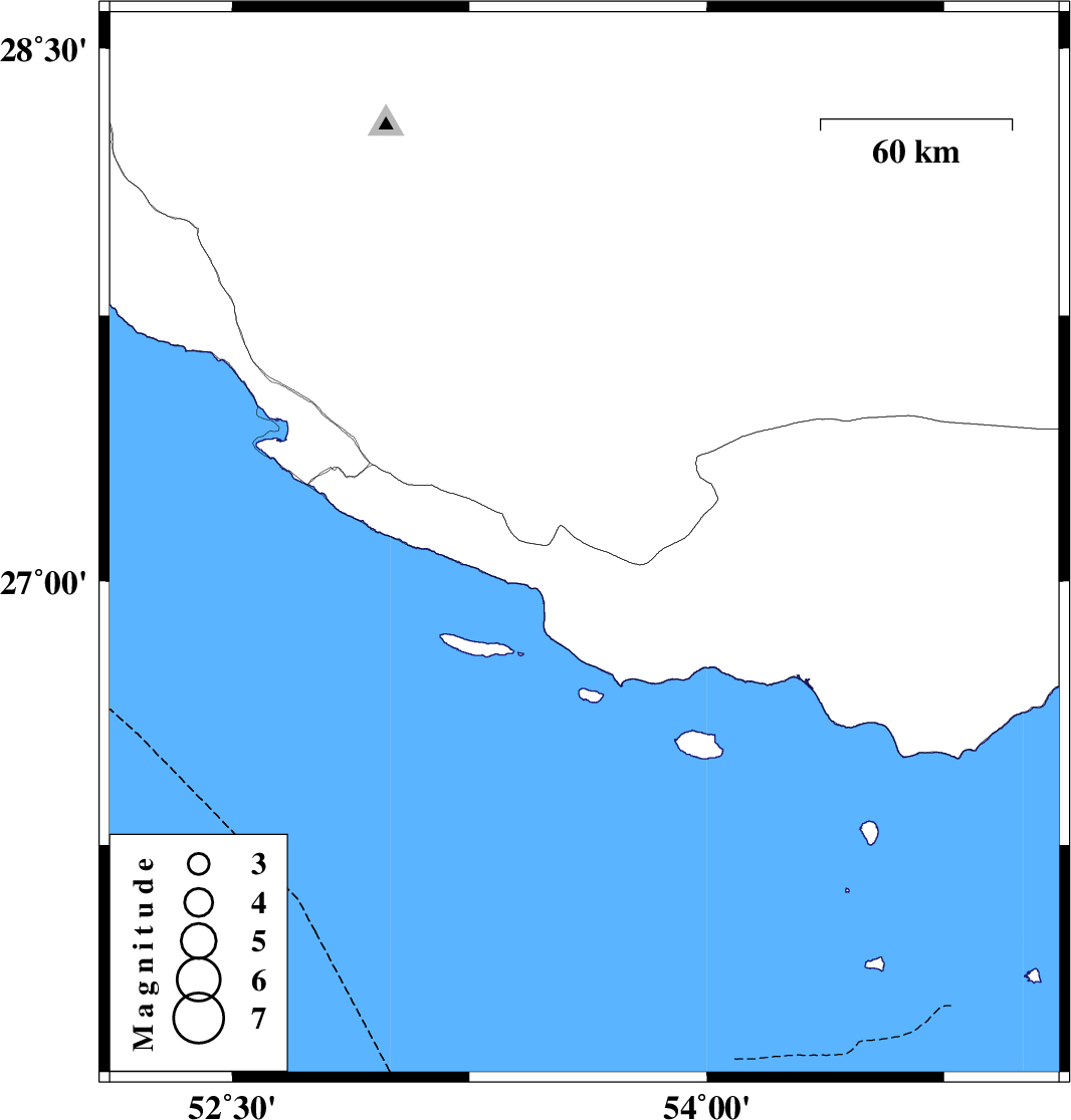 | 2024/12/09 | 18:12:53.2 | 21:42:53.2 | 27.102 | 53.613 | 27 | ML3.6 | Hormozgan Province, 51 km South-East of Lamerd |