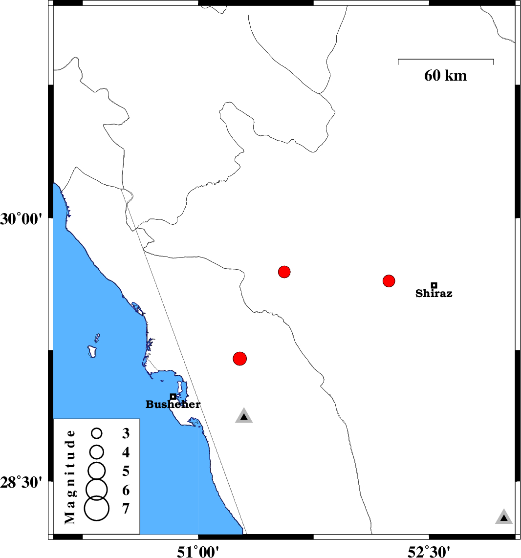 | 2025/11/17 | 23:54:14.8 | 03:24:14.8 | 29.201 | 51.271 | 12 | ML3.9 | Bushehr Province, 9 km of Borazjan | ||