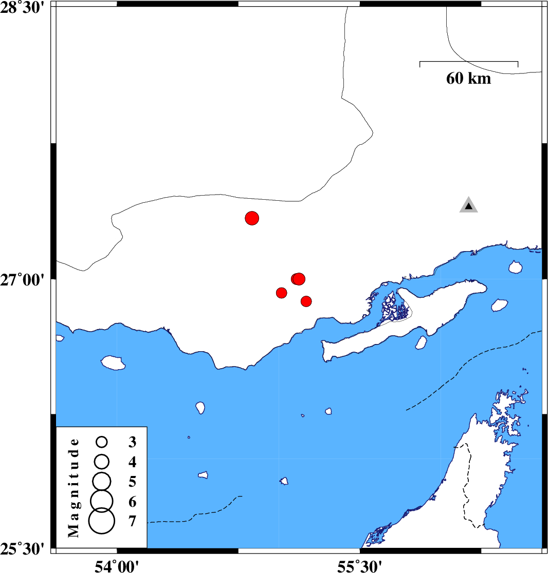 | 2025/11/24 | 10:06:55.8 | 13:36:55.8 | 26.924 | 55.017 | 12 | ML2.9 | Hormozgan Province, 47 km North-East of Bandar-e lengeh | ||