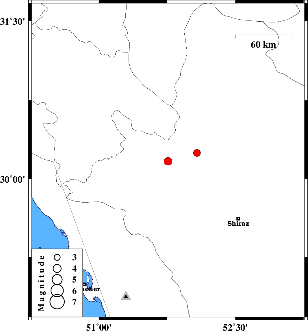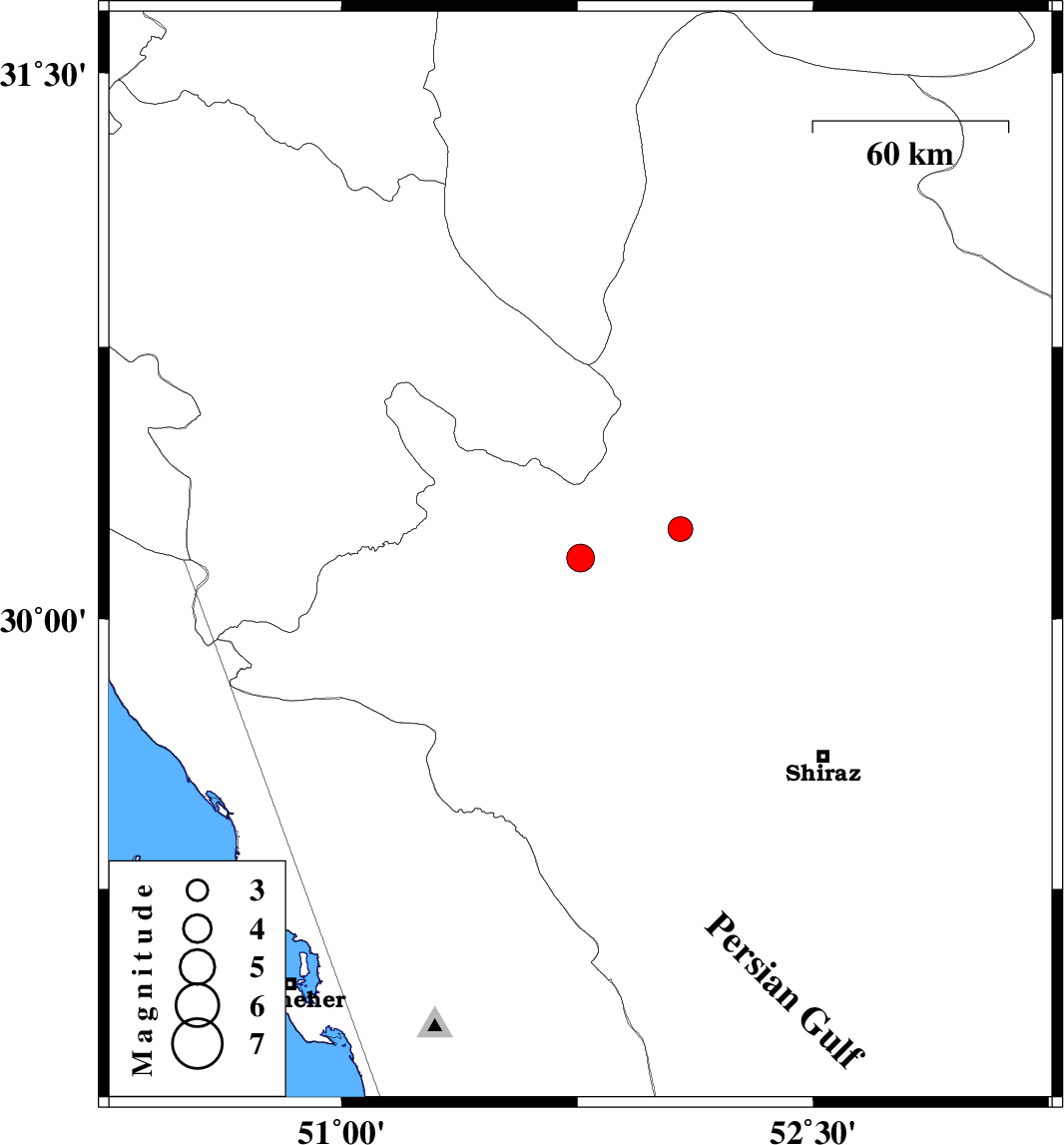 | 2025/11/27 | 22:29:13.3 | 01:59:13.3 | 30.169 | 51.76 | 12 | ML4 | Fars Province, 24 km -East of Nurabad | ||