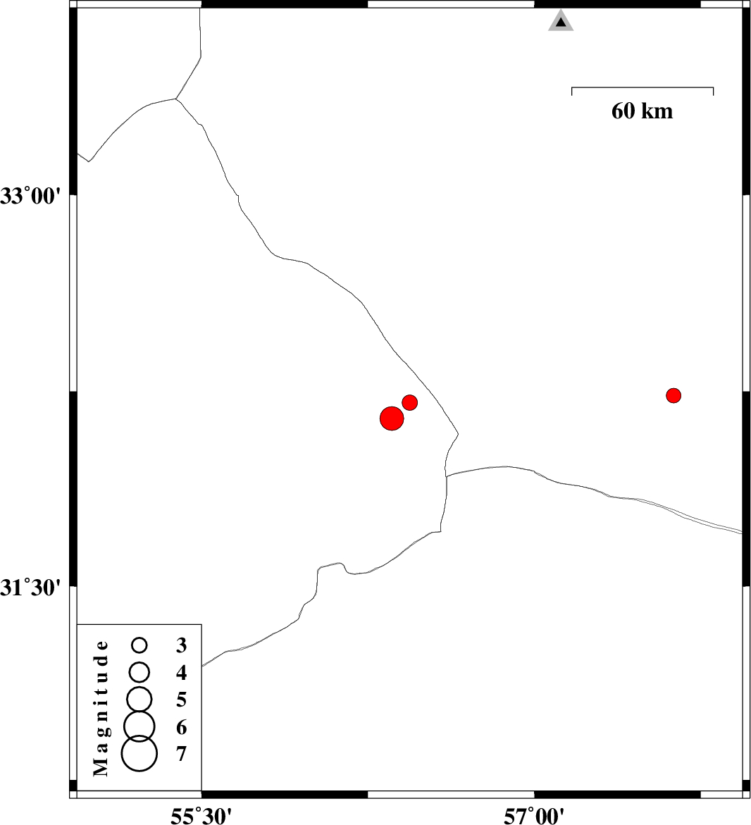 | 2025/11/22 | 19:32:19.8 | 23:02:19.8 | 32.233 | 57.627 | 12 | ML2.9 | Yazd Province, 132 km North-East of Ravar |