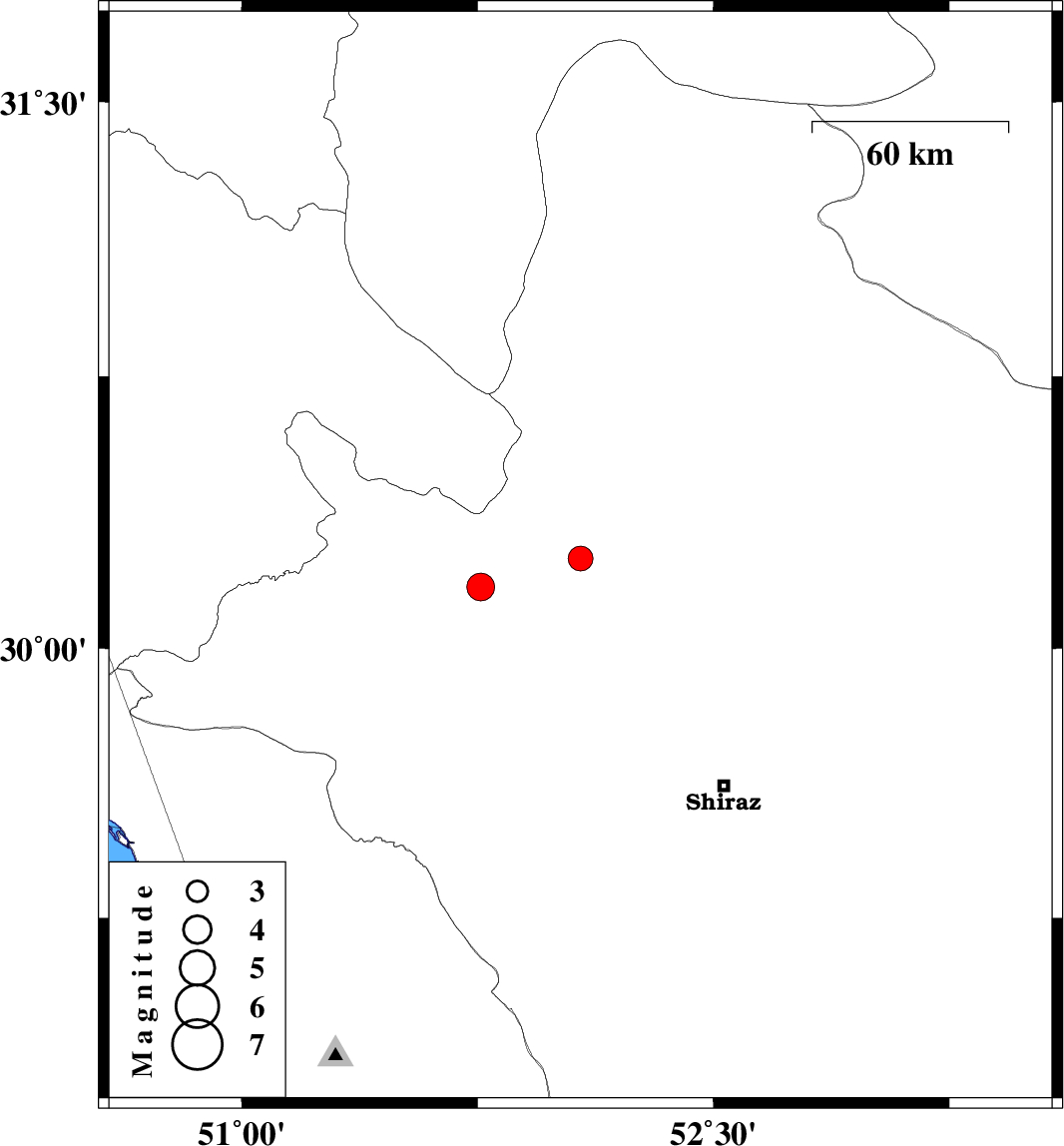 | 2025/11/27 | 22:29:13.3 | 01:59:13.3 | 30.169 | 51.76 | 12 | ML4 | Fars Province, 24 km -East of Nurabad | ||