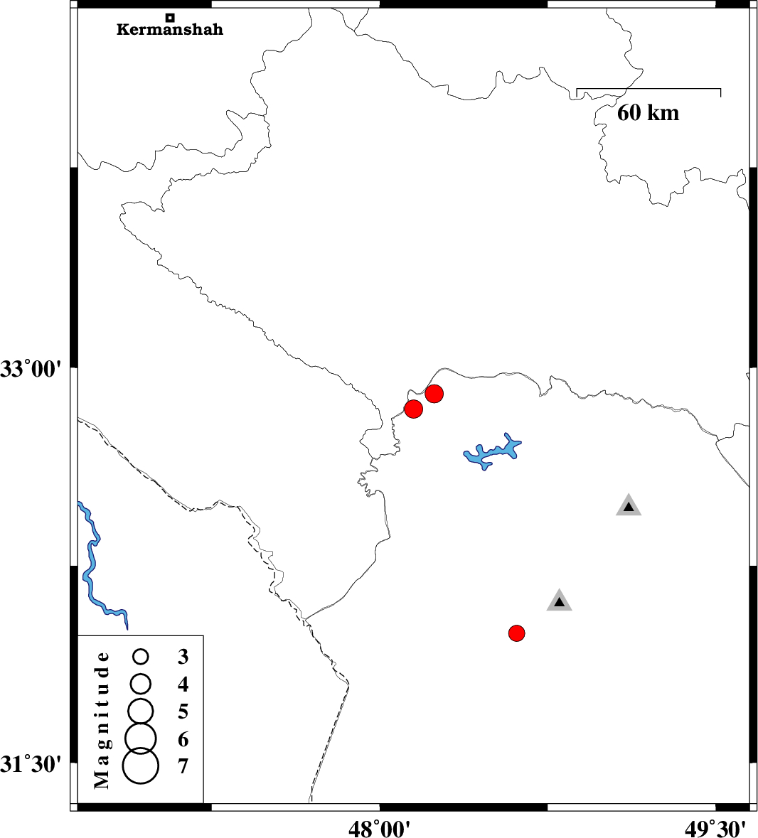 | 2025/11/30 | 11:39:20.6 | 15:09:20.6 | 32.843 | 48.151 | 14 | ML3.6 | Khoozestan Province, 47 km North-West of Andimeshk | ||
