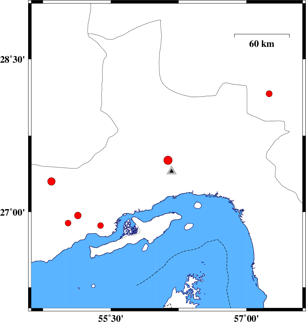 | 2025/11/29 | 10:08:06.3 | 13:38:06.3 | 26.9 | 55.375 | 12 | ML2.9 | Hormozgan Province, 67 km North-East of Bandar-e lengeh | ||
