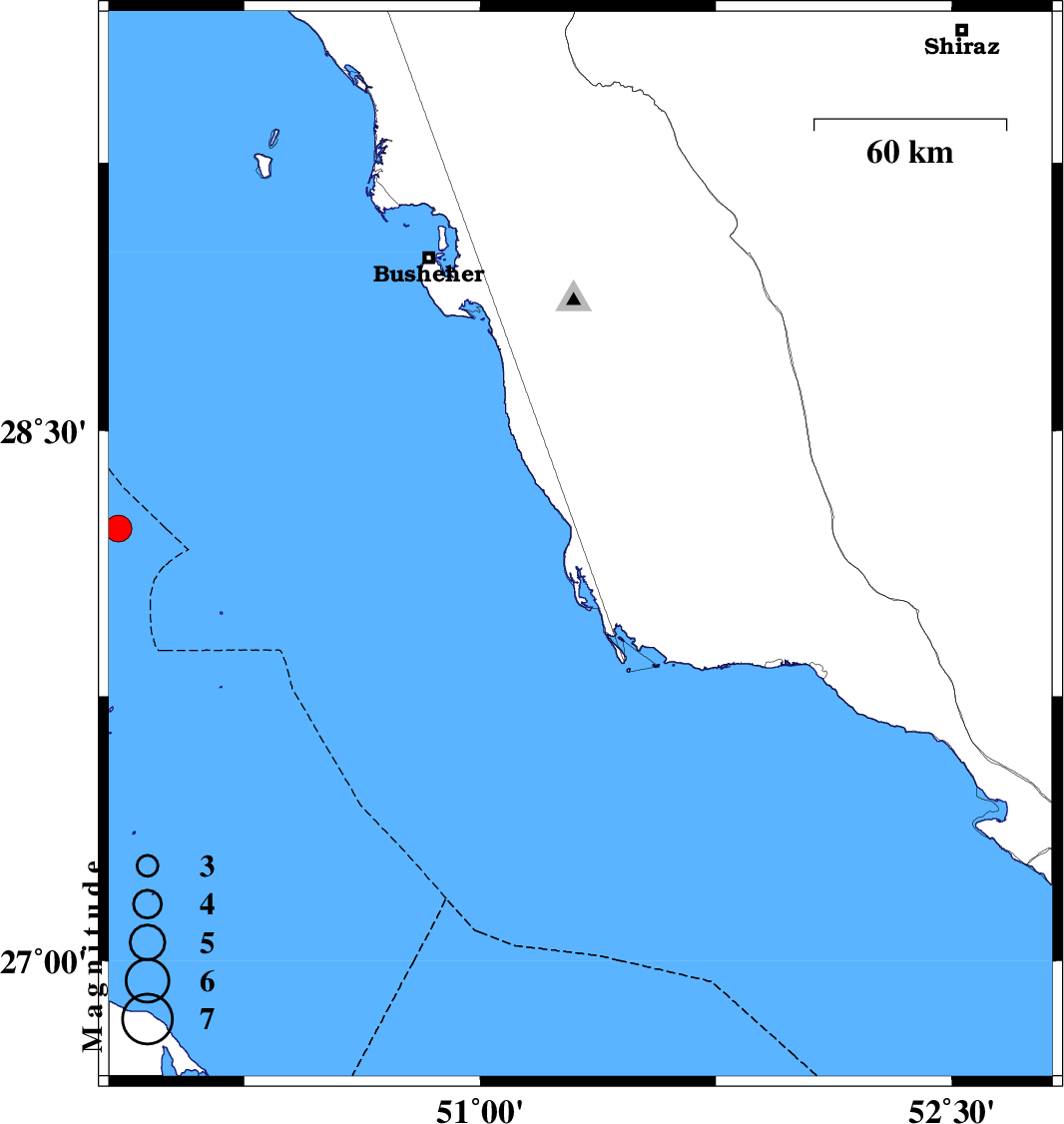 | 2025/12/01 | 19:57:09.0 | 23:27:09.0 | 28.132 | 51.559 | 22 | ML3.8 | Bushehr Province, 61 km South-East of Khormog | ||