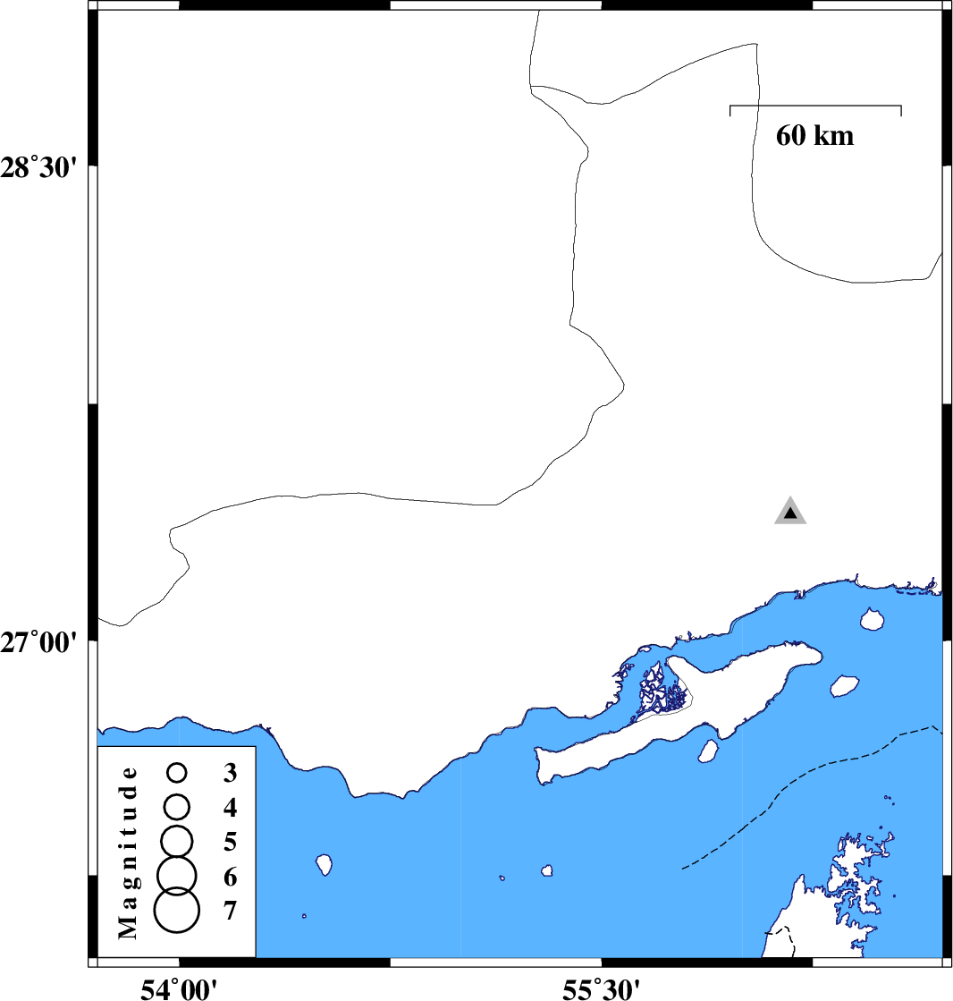 | 2025/12/09 | 06:06:12.6 | 09:36:12.6 | 27.487 | 55.21 | 12 | ML3.5 | Fars Province, 88 km South-East of Lar |
