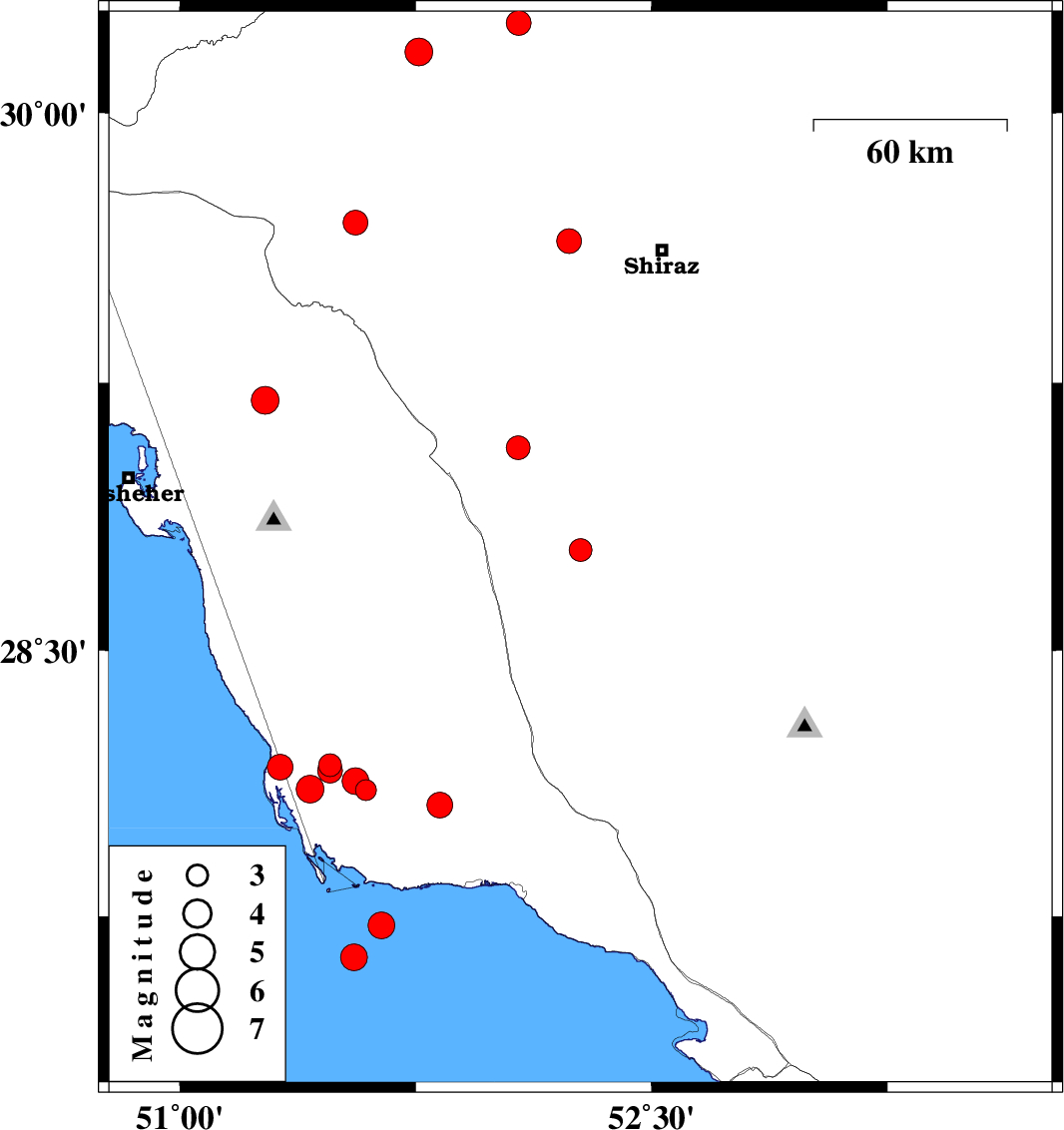 | 2025/11/17 | 23:54:14.8 | 03:24:14.8 | 29.201 | 51.271 | 12 | ML3.9 | Bushehr Province, 9 km of Borazjan | ||