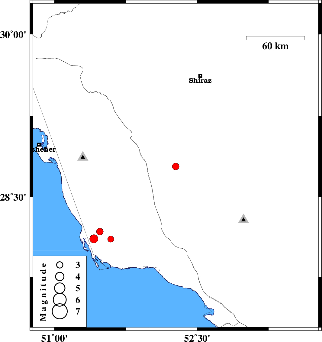 | 2025/12/02 | 22:29:16.8 | 01:59:16.8 | 28.107 | 51.591 | 12 | ML3 | Bushehr Province, 56 km North-West of Bandar-e kangan | ||