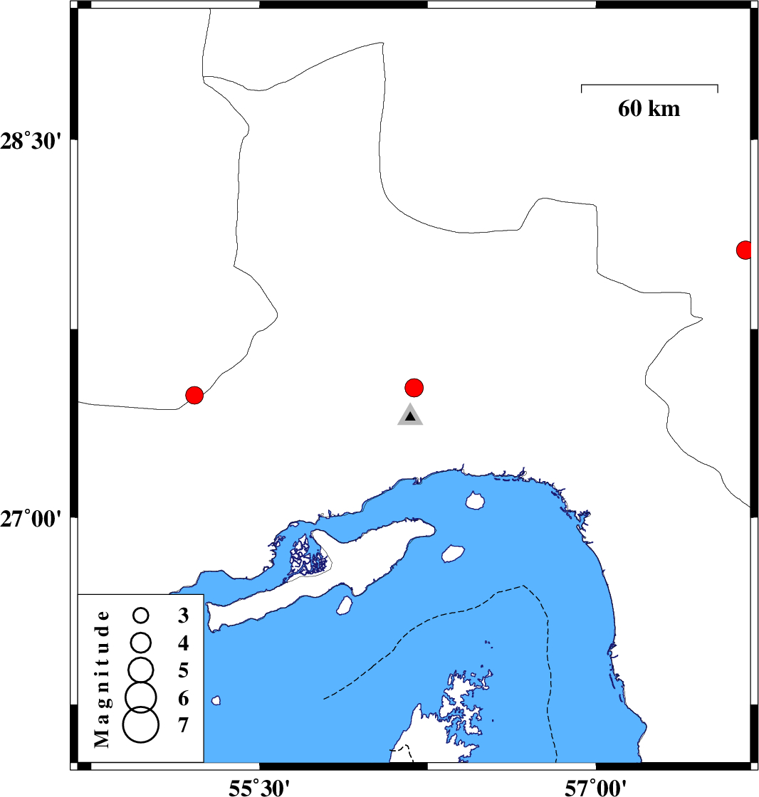 | 2025/12/12 | 04:06:55.0 | 07:36:55.0 | 27.516 | 56.189 | 12 | ML3.7 | Hormozgan Province, 38 km North of Bandar-e abbas | ||