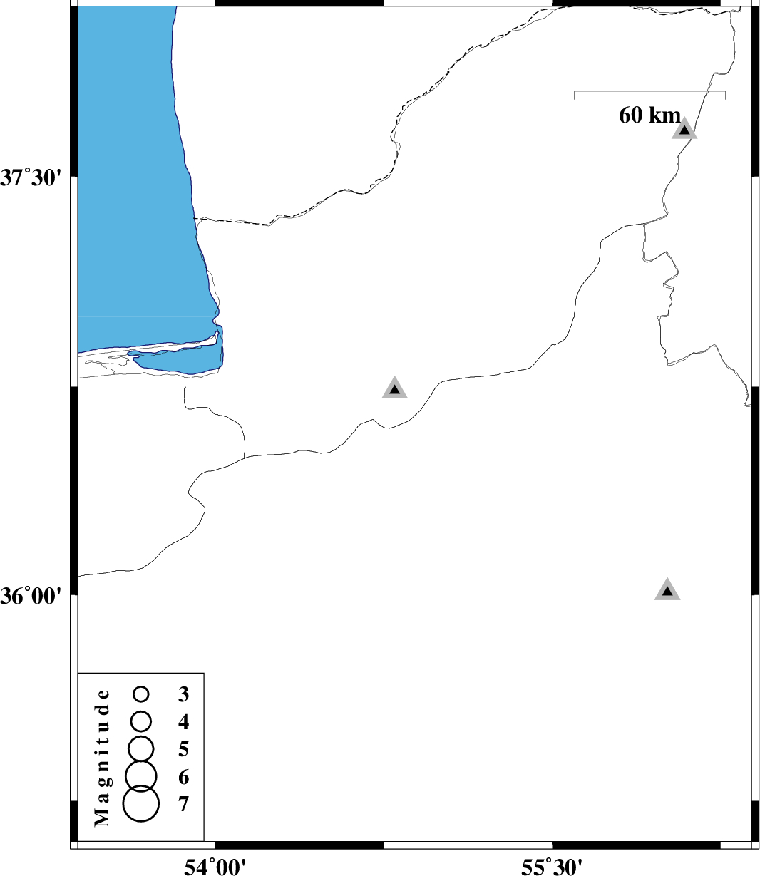 | 2025/12/11 | 12:19:34.3 | 15:49:34.3 | 36.602 | 54.887 | 8 | ML3.2 | Semnan Province, 21 km North of Shahrud |