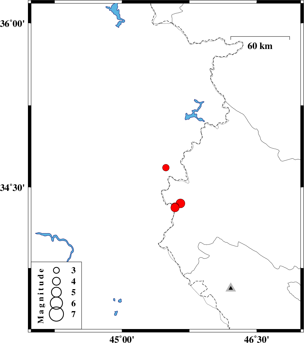 | 2020/07/12 | 11:14:01.6 | 15:44:01.6 | 34.679 | 45.488 | 8 | ML3.4 | Iraq, 20 km North of Qasr-E-Shirin | ||