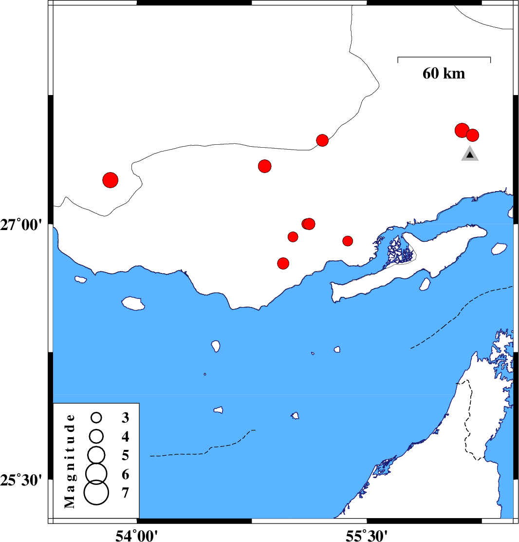 | 2025/11/24 | 10:06:55.8 | 13:36:55.8 | 26.924 | 55.017 | 12 | ML2.9 | Hormozgan Province, 47 km North-East of Bandar-e lengeh | ||